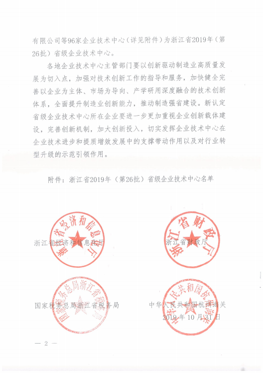 关于公布浙江省2019年(第26批)省级企业技术中心名单的通知(签章版本).pdf.pdf